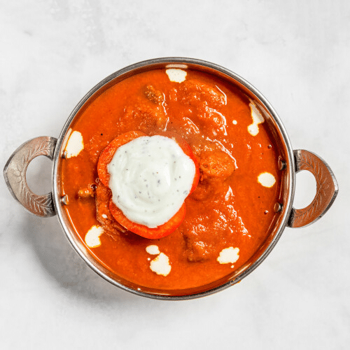 hausgemachte indische Käsewürfel mit frischer Tomaten-Sahnesauce und exotischen Gewürzen